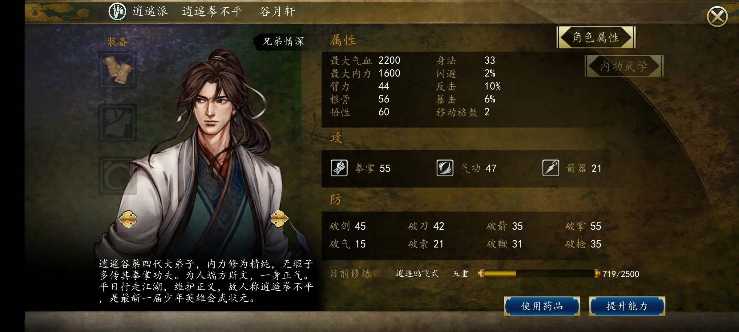 大师兄属于前期很强但后期偏弱的角色,他的定位实际偏向于保护坦类角色,在后期你会发现他实在太无力了,没闪避只能保护队友,如果你想依赖他输出可能会有点难度。