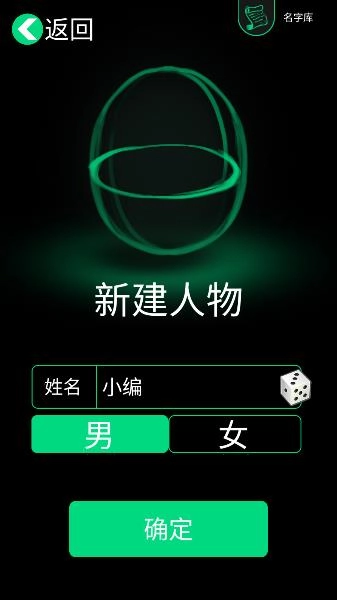 输入你的角色名称并选择性别,其它信息随机生成,准备开启全新人生。