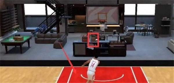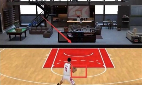 1. 在游戏里,我们持球朝着内线推进,需要跑到罚球线的位置。