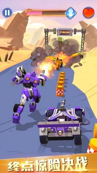 《汽车人变形热血赛车》是一款机甲题材的闯关游戏。如果你钟情于变形金刚这类题材,这款游戏绝对值得一试——游戏中的所有角色均为酷炫机甲,并且具备变形能力,能根据实际情况灵活切换形态,助力玩家轻松突破关卡中的各类阻碍。