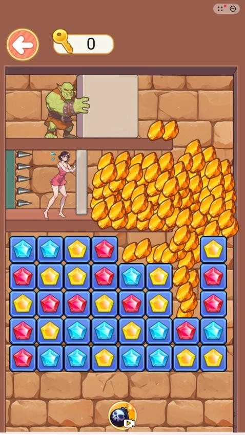 2、随着方块的消除,金元宝石头会落下,你的每一次操作都关乎主角安危。