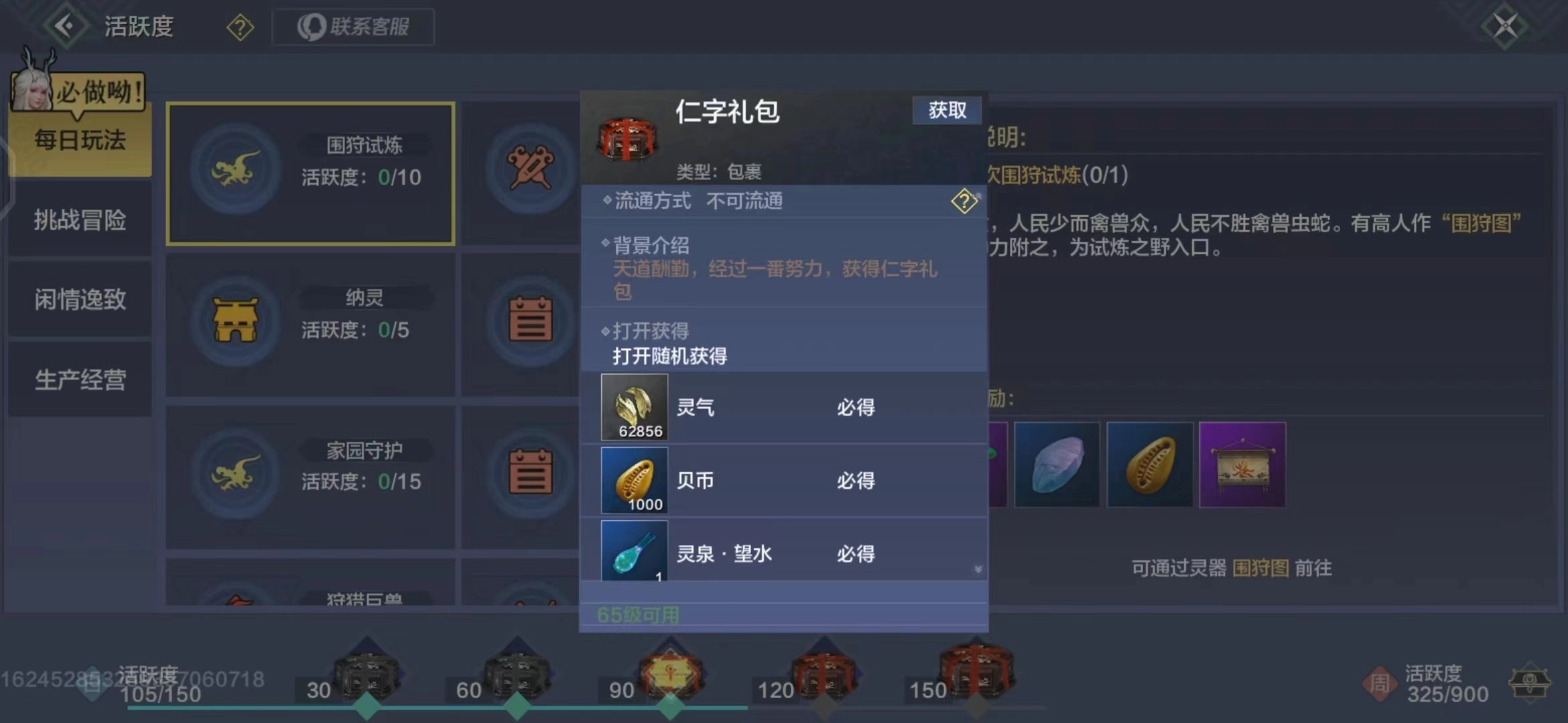 活跃任务:每一天会有活跃活动,做了每日正常的活跃活动会有奖品箱子,奖品箱子不需要直接获得,要等将近下线以前获得如此会让箱子的以极限的方式让我们增添灵气