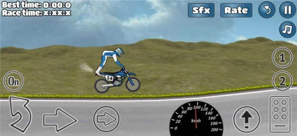 1、点击屏幕即可操控你的摩托车,完成加速、跳跃、后空翻等一系列动作;