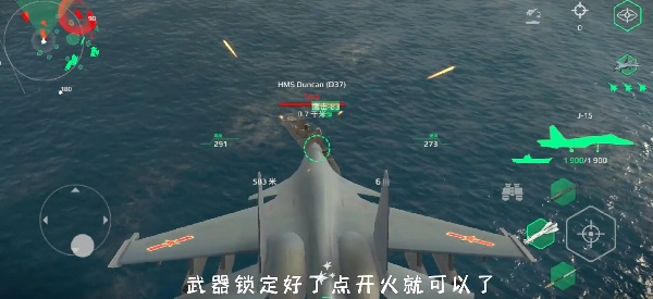 3、屏幕向上滑是拉升,向下滑是俯冲,武器锁定点击开火。