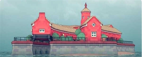 6、建造灯塔:水里随便盖一个房子,然后切换颜色在上面继续盖一层即可。