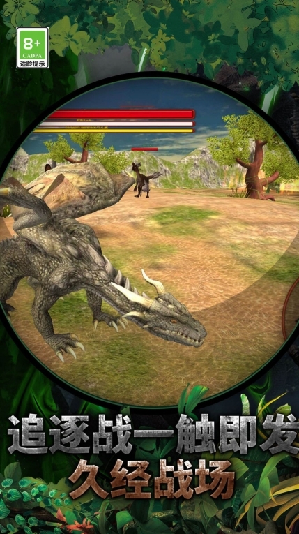 在这款游戏进行野外探索时,你有机会捡到能够孵化的恐龙蛋,经孵化而出的恐龙能够成为你的坐骑。