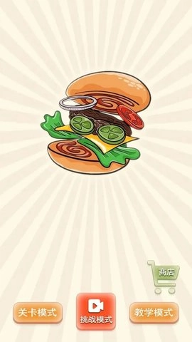 1、游戏里存在各式各样形状与色彩的食材,玩家需点击屏幕来把这些食材搭配制作成可口的汉堡。