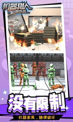 《机器猎人模拟器》是一款主打休闲搞怪的益智类游戏,游戏内设计了众多风格迥异的机器人角色。游戏中的玩法轻松解压,你可以尽情破坏每一个机器人,还能尝试全新的玩法进行挑战,各种场景都充满了幽默搞笑的元素。