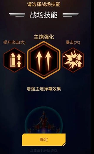 2、玩家在战斗前,战场技能,要选择主炮强化,提高自己战机对敌方的伤害。