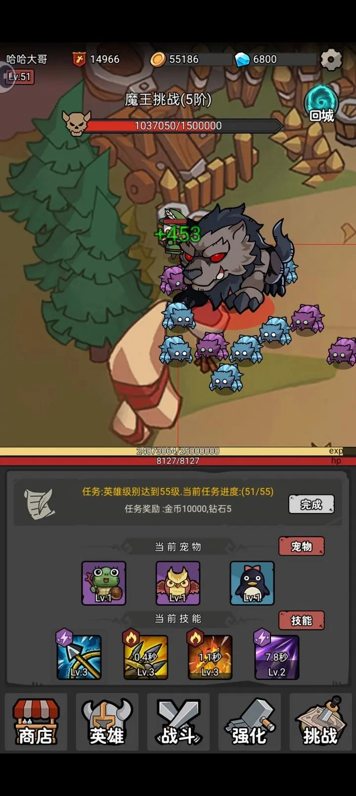 这款游戏的主要阶段是升阶,但是boss垮阶打起来很费劲。