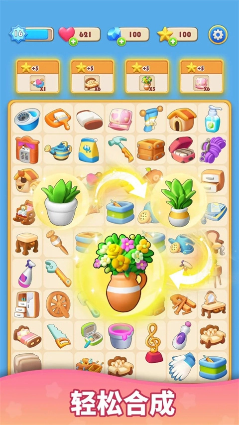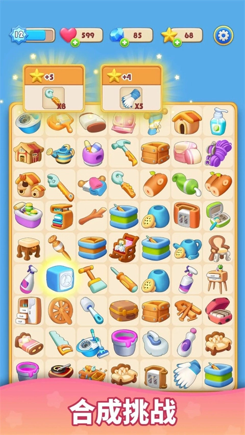环游点点消是一款点击类趣味休闲游戏,它巧妙融合了点击消除与合成玩法。玩家在游戏里需持续点击消除方块,以此获取合成所需材料,同时也能通过完成任务来得到这些材料。之后,借助这些材料以及已解锁的配方,玩家可以合成家园里的家具或其他装饰品。不仅如此,玩家还能对家园进行翻新装修,比如拆除墙壁、更换地板、重新布线和翻新家具,让旧房子摇身一变,成为崭新的家园。