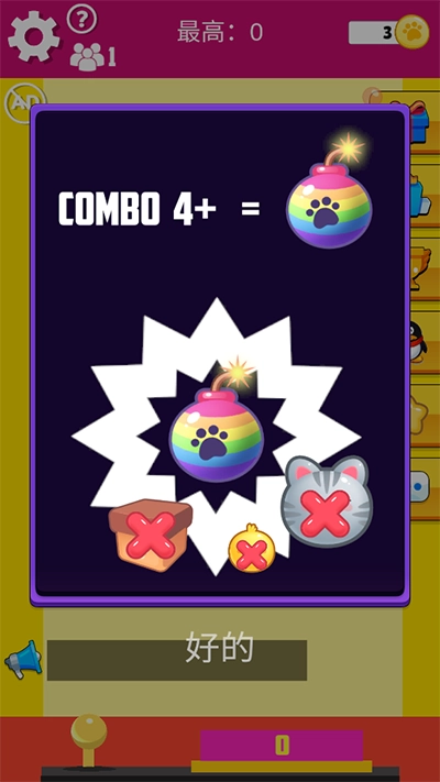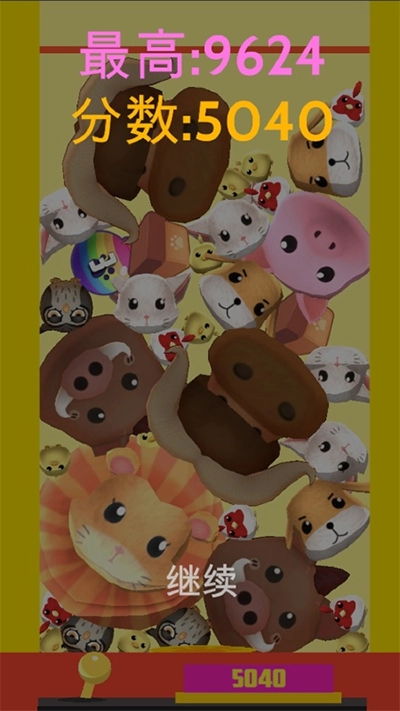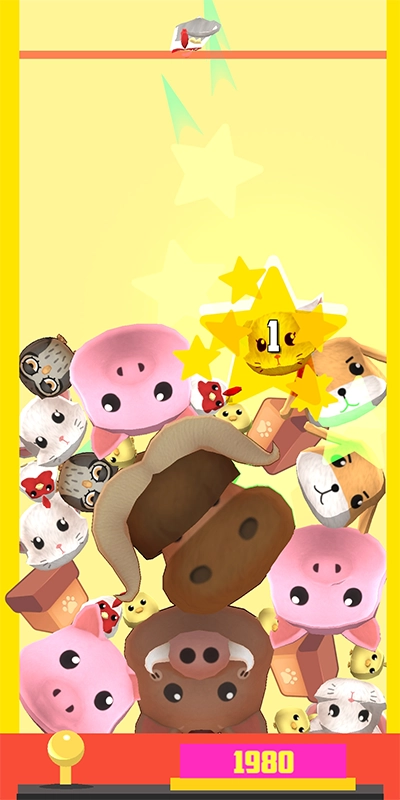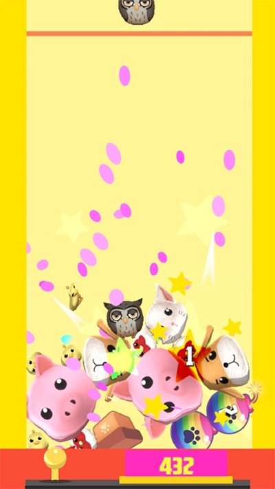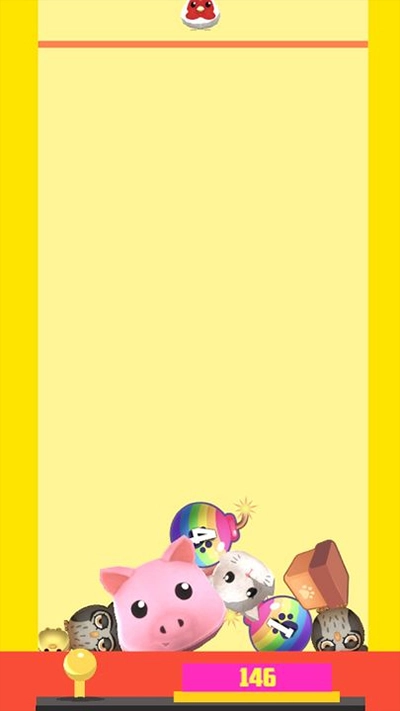 1、游戏中玩家需要移动不断下落的小动物,使其与相同的动物合成体积更大的动物,直到堆积的动物越过屏幕上方的红线,游戏方可结束。