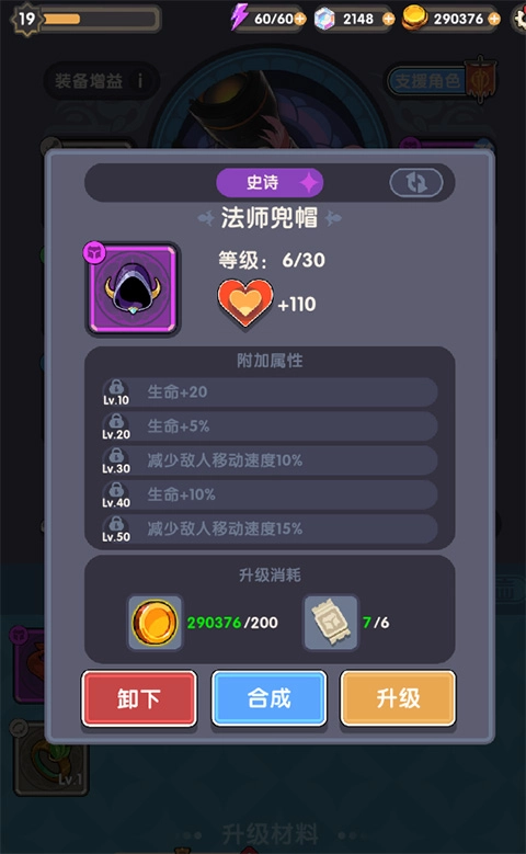 3、6件装备达到30级,可获得1个封印石奖励。可以在装备中选择级别高的装备提升等级,对于普通级别的装备可以通过分解的方式形成碎片,用于其他装备提升使用。