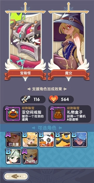 当你拥有4个英雄时,助战支援系统开启。在装备界面的右上角,点击支援角色,除了获得英雄的属性加成外,还能获得支援英雄的初始秘宝加持。