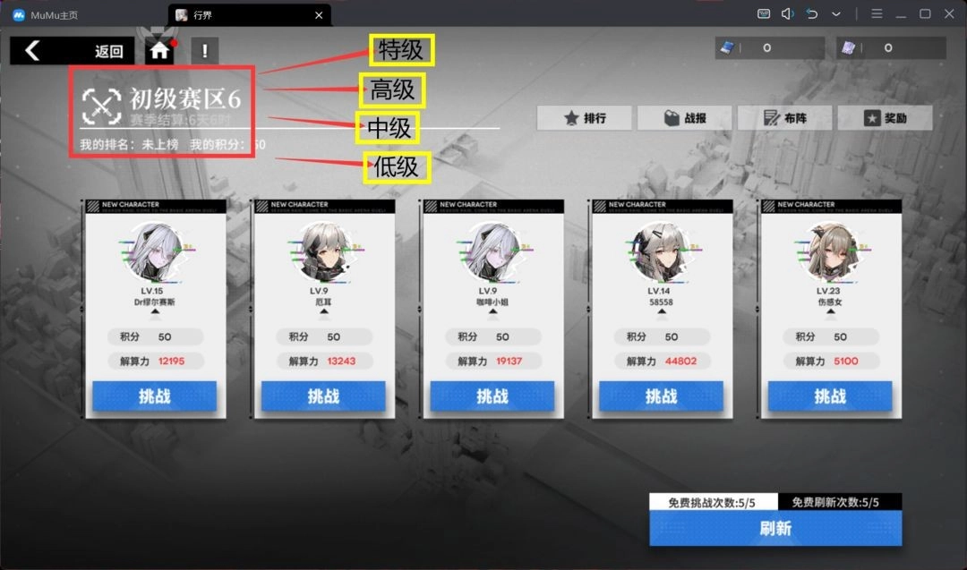 竞技场分为四个等级:【初级】,【中级】,【高级】,【特级】。