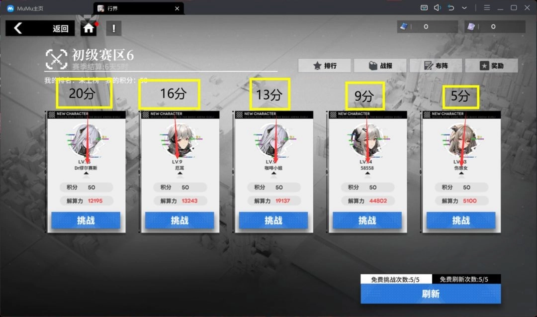 每天打五次免费的,挑战奖励拿满,每日奖励低保也能拿满。