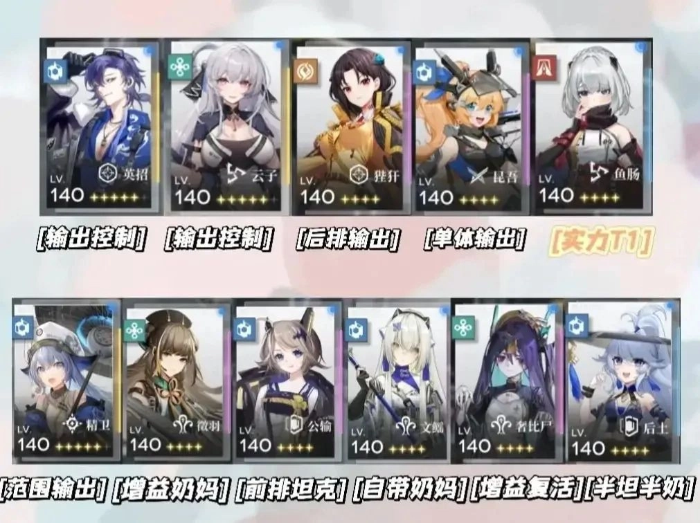 T0是综合能力的体现,这几个后期,输出配个前排有单刷第八章浅层的实力,辅助配个sr的赤霄输出,也有打八章浅层关卡的实力