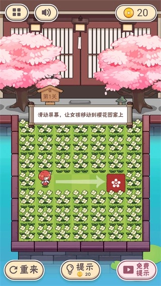 3、只需通过滑动屏幕就可以让女孩移动到樱花图案即闯关成功。