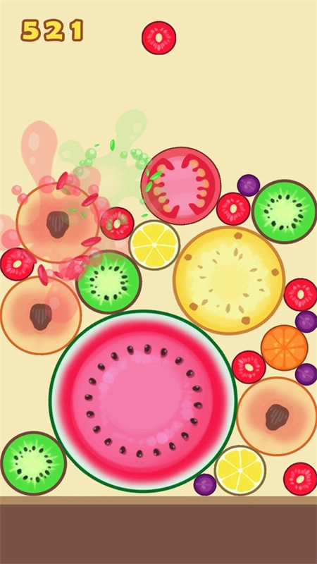 3、合出的水果越大获得的分数就越多,休闲解压的玩法会给你很多乐趣。