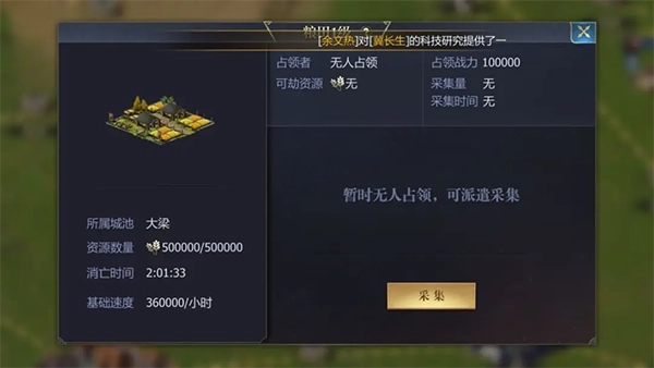 资源田均有等级,采集速度不同,可以攻打别人的采集地获取高额资源。