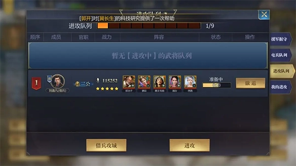 一般消耗是借用普通战力的武将,如果遇到强敌建议直接借用高战力的武将,打对方最后一支队也可以使用高战,会自动产出一个高战的镜像,来帮助驻守攻下的城池。借兵是消耗兵符的,获取量不大,不建议盲目使用。