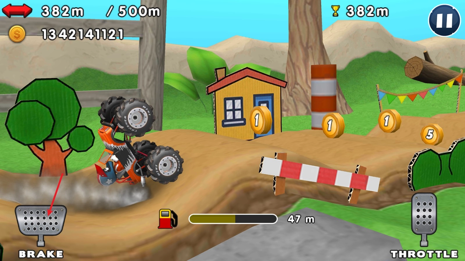 7、当汽油消耗完,或者翻车了就会结束挑战,并结算你的奖励。