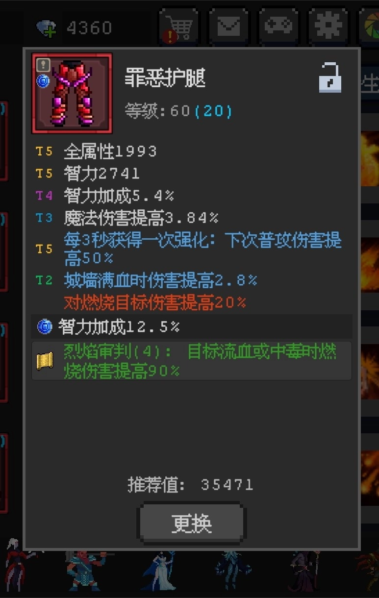 护腿是燃烧增伤和蓝宝石。