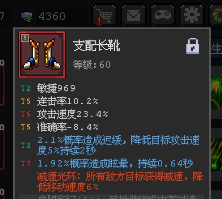 头盔是减速增伤和绿宝石,为了让这条生效,辅助那边最好装备上搞一条减速光环。如下图↓↓↓