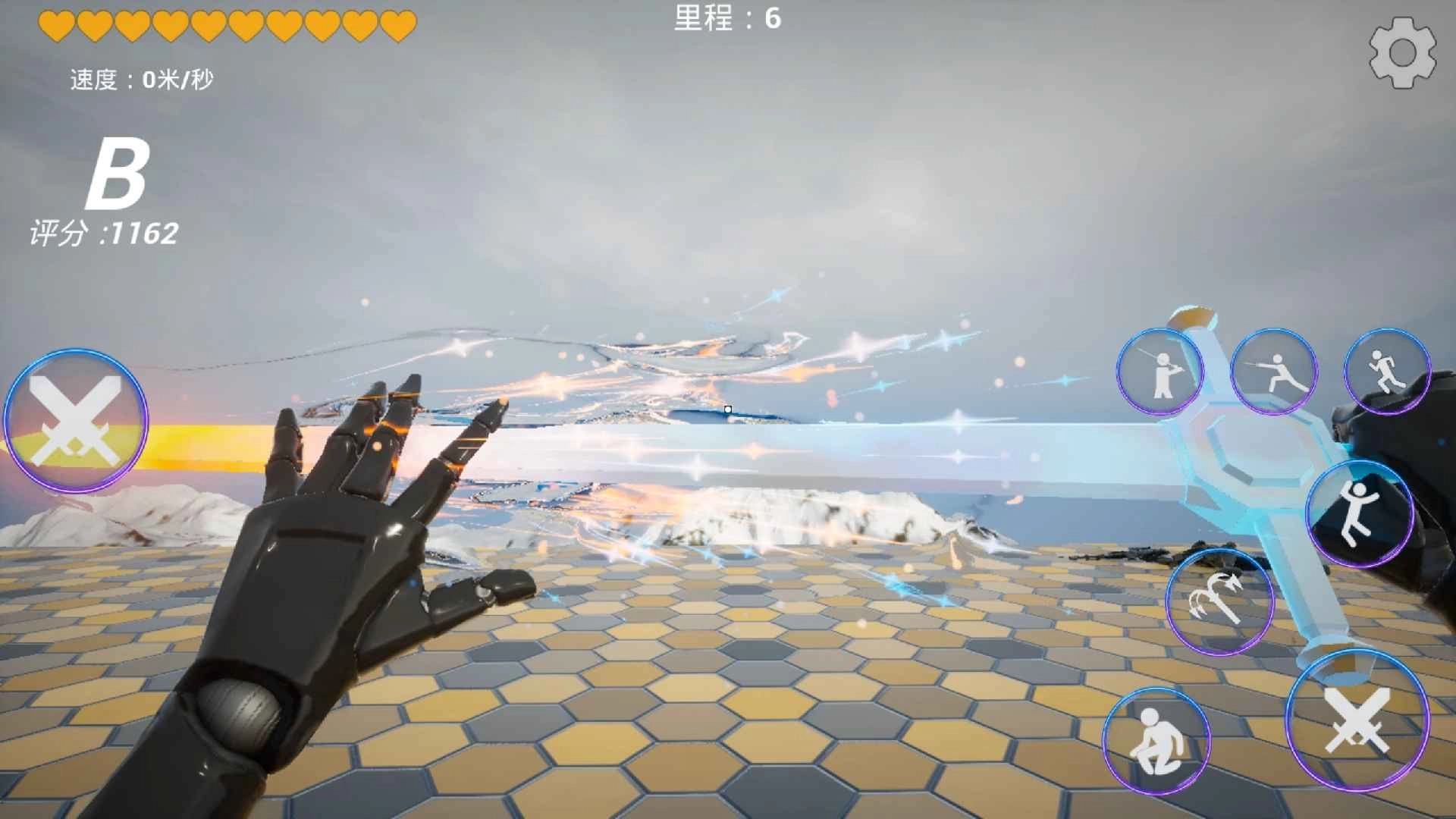 1、进入游戏后即正式开始,正式开始后角色会自动前进,右侧为玩家的攻击、钩索、跳跃按钮。