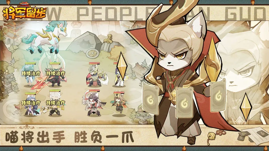 1,众多强力的三国猫咪武将可供自由搭配,助力玩家构建出强大的游戏阵容。