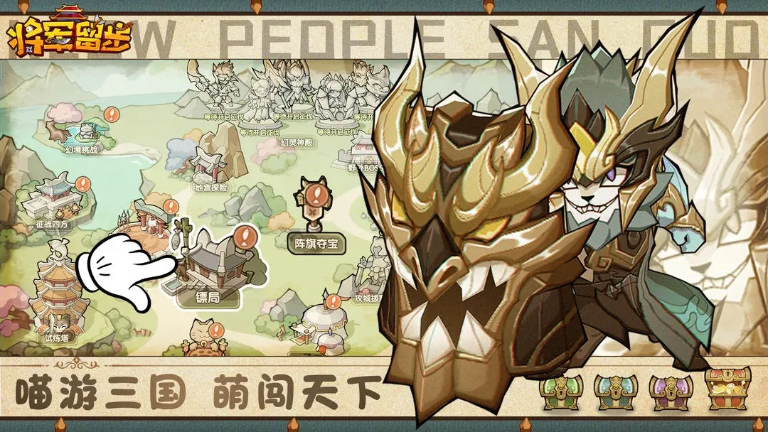 《将军留步》是一款以猫咪为题材的策略放置回合制冒险游戏,拥有众多可爱的猫咪角色供玩家挑选,每个角色都具备精致的形象设计。玩家可以合理搭配角色,体验充满创意的放置闯关玩法,借助各类道具最大化提升角色能力,快来游戏中开启趣味十足的三国猫咪养成之旅吧!