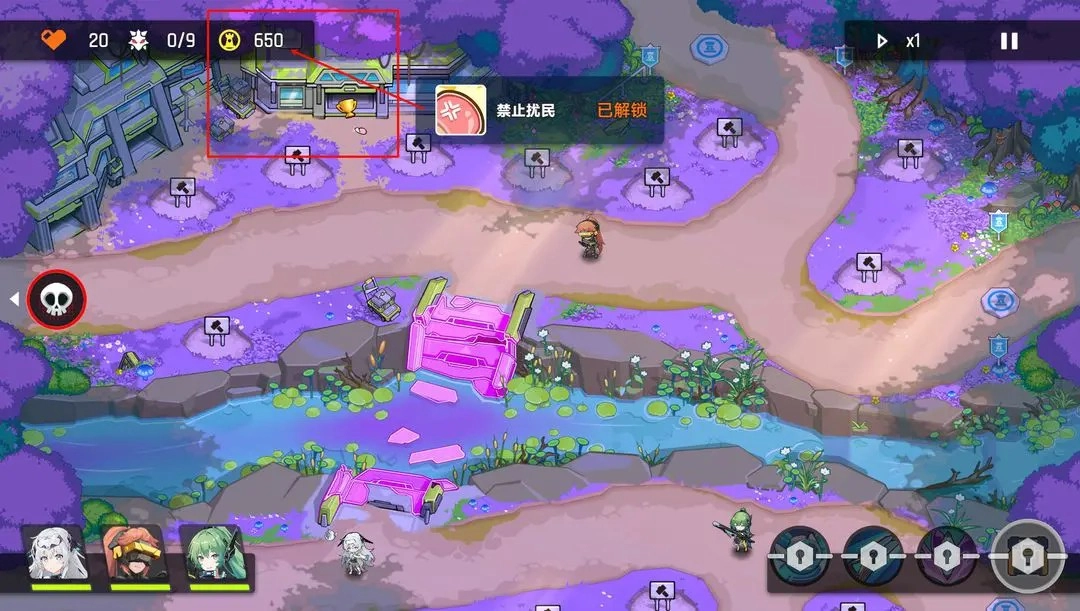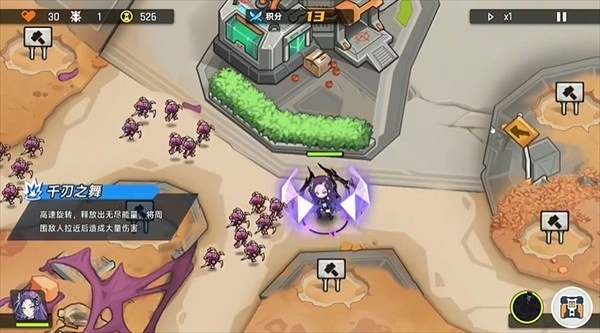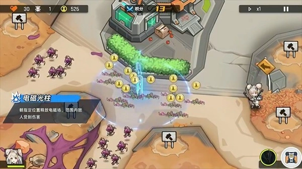 1、游戏开始前先把激光塔装备好,并且将它的技能升级一次。
