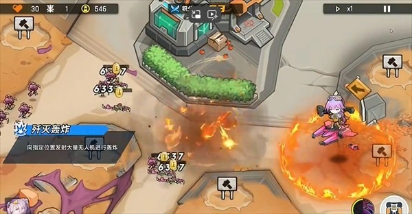 1技能:歼灭轰炸:向指定位置发射大量无人机进行轰炸