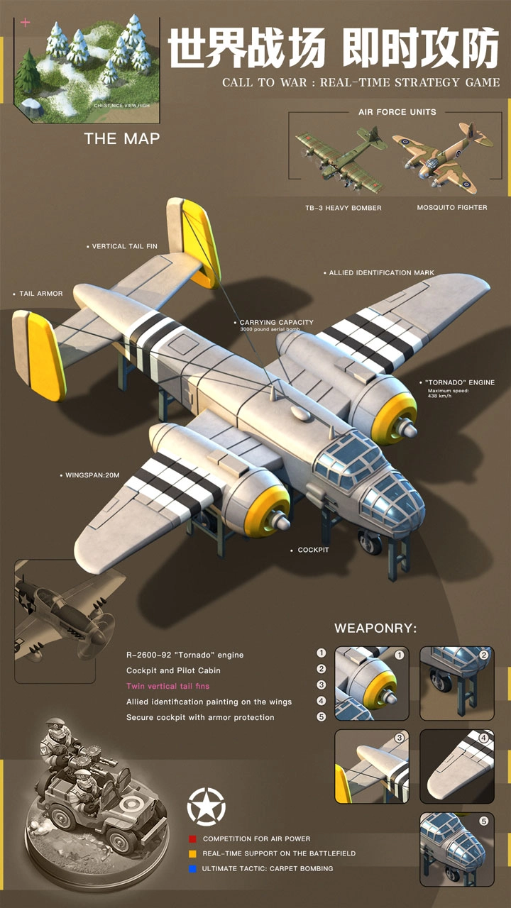 《我的战争》是一款以现代背景为依托,融入卡通风格的模拟战争类游戏。在游戏里,玩家将化身指挥官,借助即时攻防、基地建设等手段,率领自己的势力与其他文明势力进行激烈交锋。
