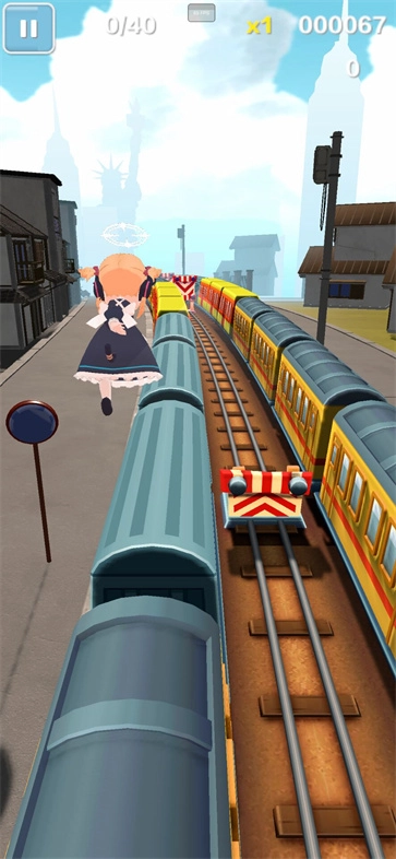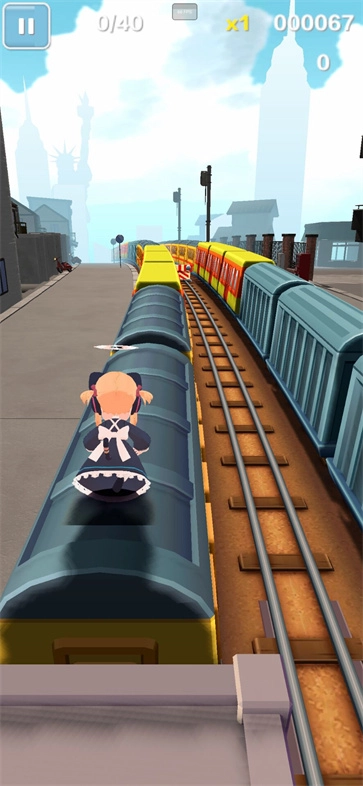 3、正式开始后左右滑动可以更改轨道,向上滑动是跳跃,向下滑动是翻滚。