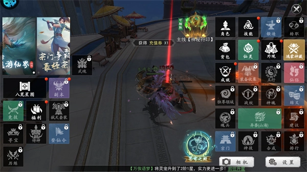 《我欲修真》包含角色、背包、技能、装备、外观、进阶、副本、聊天、商城、市场等多种系统,玩家可点击功能面板中的对应按钮来开启这些系统。