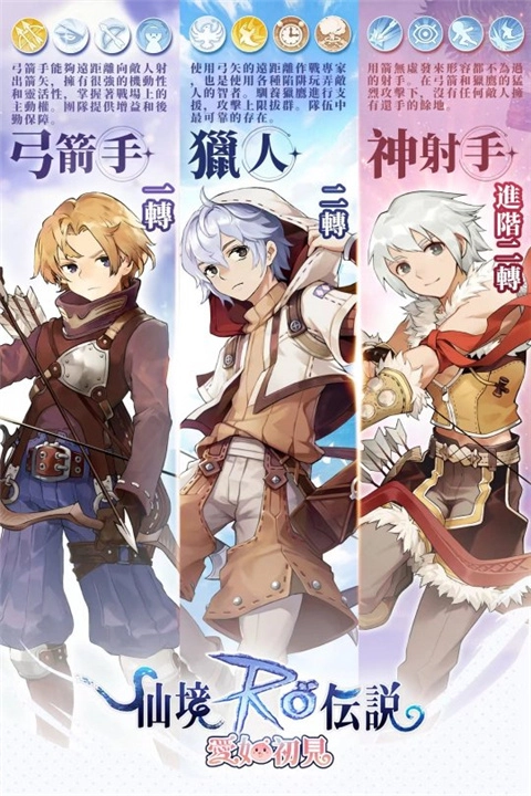 1、弓箭手系列的特性是能够远距离的向敌人射出箭矢,并且拥有很强的机动性和灵活性。其中又分为一转「弓箭手」和二转的「神射手」。一转「弓箭手」主要是透过【二连矢】同时射出两支箭来造成高额的单体伤害。而二转「猎人」后,则有了两种攻击模式。