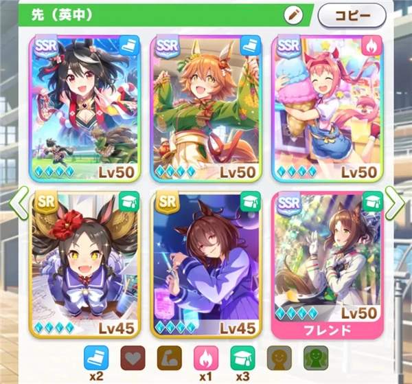 4、支援卡种类尽量保持在3种, 主训练点击尽量保持在2种,主训练设施等级优先级最高,其余钱多没处花再考虑是否花钱提升(你的box不支持你进行多项目训练,弱卡单彩低设施意义太低) 比如 3(自己卡不强+借强卡) 2(自己卡够强/差不多强+借种) 1(综合强度补足/挂件)