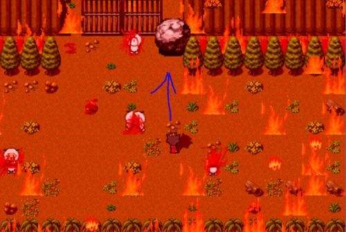 3、移动红太狼出门查看,靠近图示洞口后,点击右下角调查,获取硫磺。