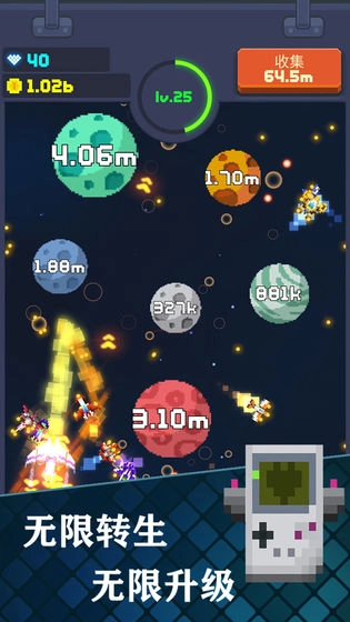 通过点击屏幕中的按钮来对不同的星球进行轰炸收集资源,只有强大的火力才能击碎它们的防御;