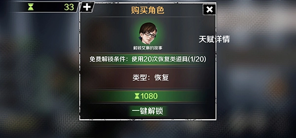 2、解锁艾琳需要使用20次恢复道具才可以解锁;