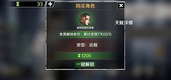 4、0氪完全可以半天解锁所有角色。关键就是女医生,刷到的钱把所有的武器升级满,解锁成就,给1300成长点,直接可以买女枪手,大汉把近战武器全升满就解锁。