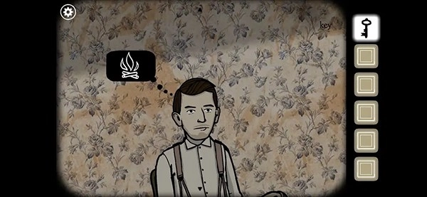 将木条搬进壁炉里,用火柴点燃。得到第二把钥匙。