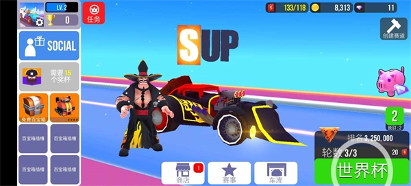 sup多人赛车是一款3D卡通风格的真人在线竞技赛车游戏,游戏内车辆全部解锁,更有免费赛车皮肤可供使用,能让你的赛车外观更酷炫、更具气势。这款游戏趣味性十足,你可以随时邀请好友组队开黑,在不同路线的地图上展开挑战,尽情体验驾驶赛车狂飙驰骋的快感。此外,游戏内容十分丰富,还支持自由DIY赛车哦。