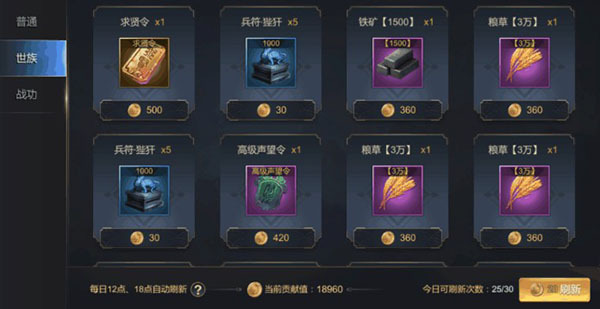 在这个兑换场所里,顾客能够用自己积累的贡献积分换取所需物品。这里的商品列表会在每天中午12点和傍晚6点自动更新,而且每天总共可以手动刷新30次,系统还会额外赠送5次免费刷新的机会。