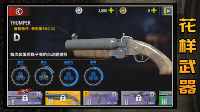 3、在这款游戏中会有众多武器和道具可逐步解锁,使用后可获得更强大的附加组件,带来极大的杀伤力。