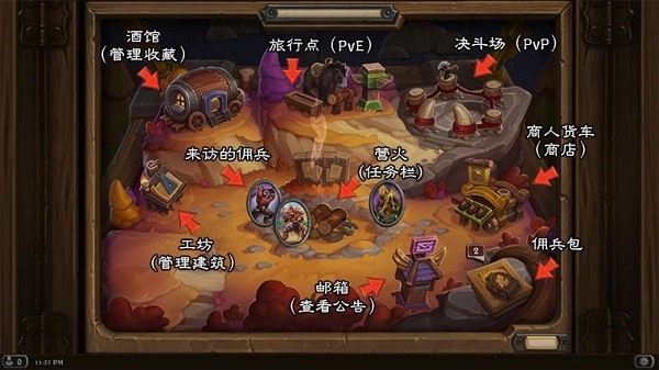 营火与来访的佣兵:营火是新模式单独的一个任务系统,点开就可以看到有什么任务需要玩家进行,而这些任务往往来自于来访的佣兵。这些佣兵都会是较为稀有的角色,完成他们给出的任务就会获得他们的碎片,用以在酒馆里解锁或者升级他们。