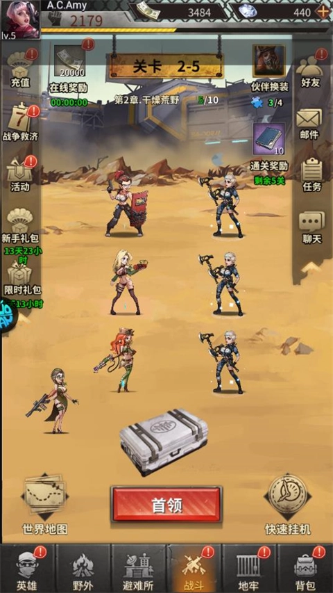 2、挑战首领,能获得大量英雄道具、货币、装备等