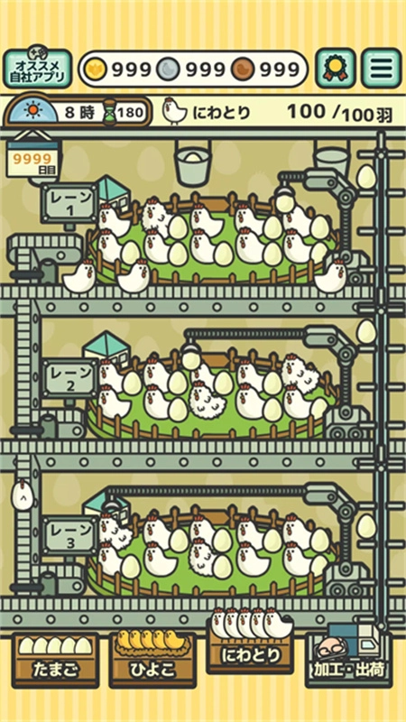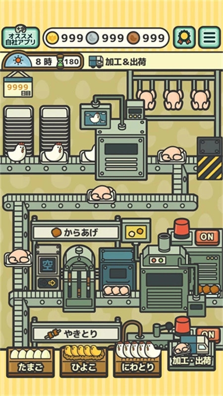 2、而来到夜间之后,可以强化或者制造新的流水线或者增加商品、改良小鸡品种