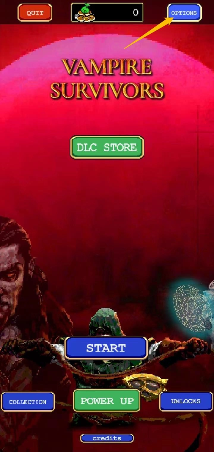 1、玩家进入游戏后,首先点击界面上方的蓝色按钮【OPTIONS】;